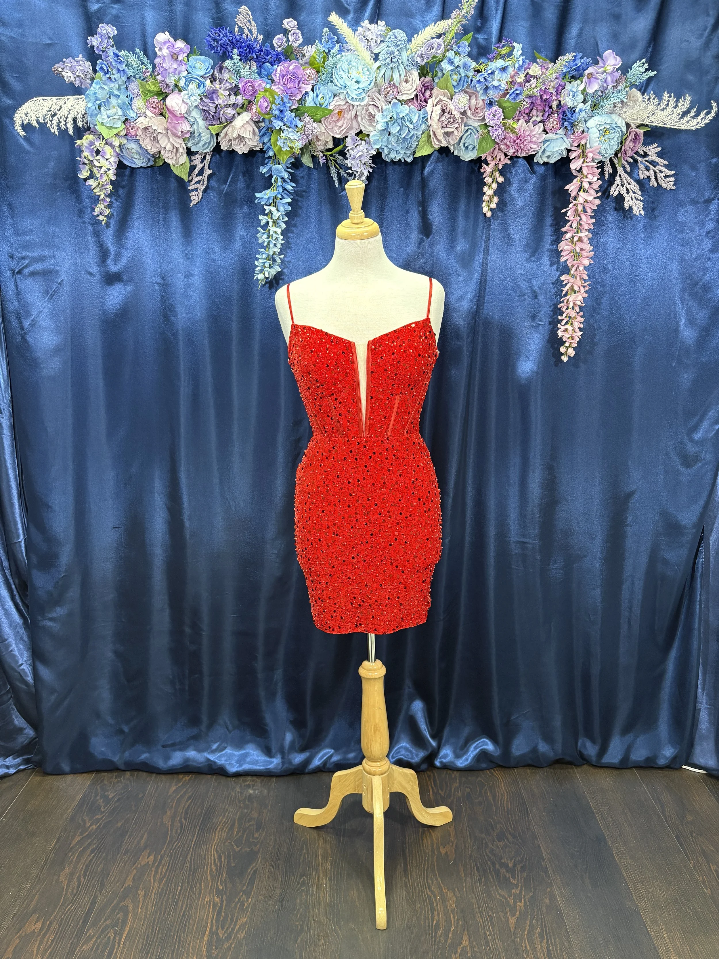 Prom & Pageant › 55689 Image 1 of 4 Image 2 of 4 Image 3 of 4 Image 4 of 4 55689 $298.00 Velvet sequin cocktail dress with pearl embellishments and corset bodice. Size: Select Size NS 6 Color: Select Color NC Red Quantity: Add To Cart Added! Velvet sequin cocktail dress with pearl embellishments and corset bodice.