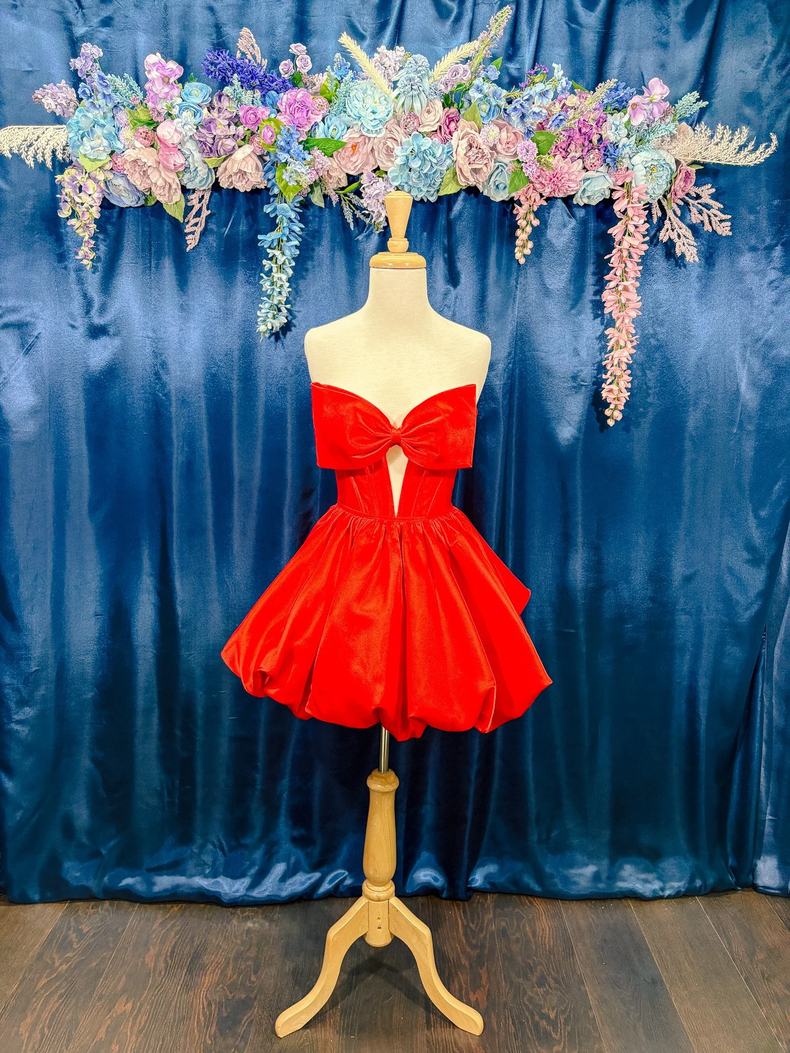 Prom & Pageant › 57512 Image 1 of 3 Image 2 of 3 Image 3 of 3 57512 $398.00 Strapless short dress with middle cutout, bow neckline and bubble skirt. Size: Select Size NS 00 Color: Select Color NC Red Quantity: Add To Cart Added! Strapless short dress with middle cutout, bow neckline and bubble skirt.